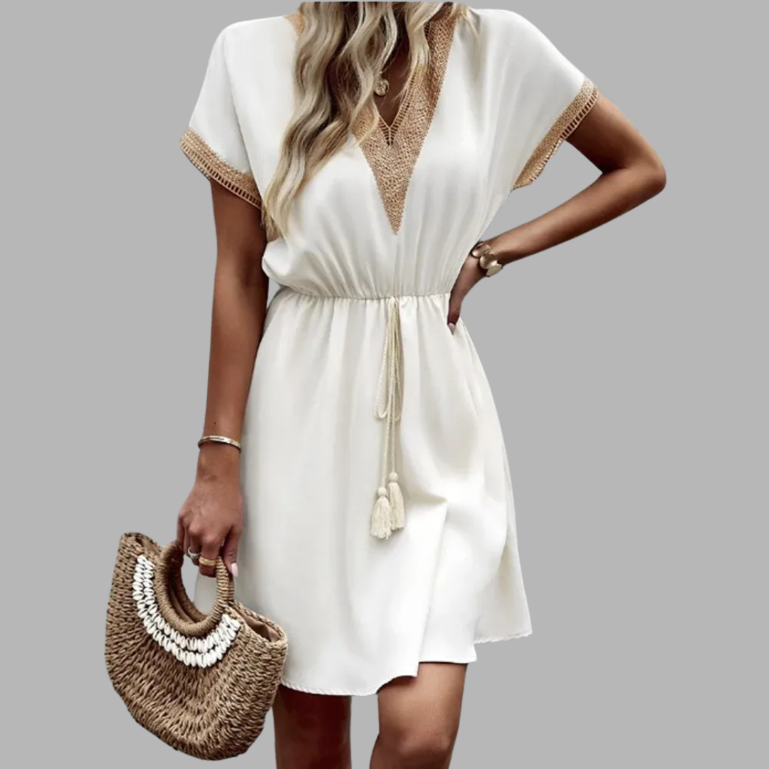Vår Astrid – Klassisk Bohemsk Kjole med Flatterende Livbånd er den perfekte blandingen av avslappet eleganse og bohemsk sjarm. Enten du nyter en dag i solen eller er på vei ut for en helgetur, er denne kjolen designet for å få deg til å føle deg enkelt stilig. Den flatterende V-halsen og det justerbare livbåndet fremhever de rette områdene, mens det myke, pustende stoffet holder deg kjølig og komfortabel hele dagen.