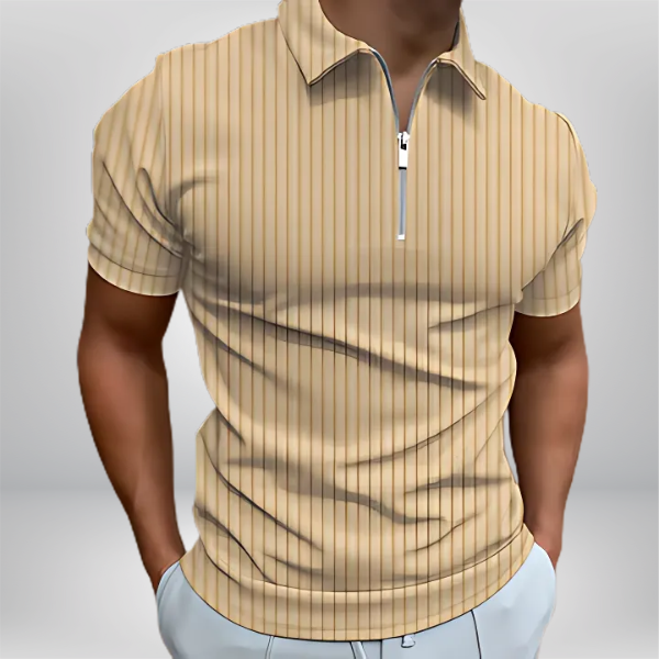 Oppdag Ymir, en moderne pikétrøye designet for menn som setter pris på stil og komfort. Den smale passformen, det diskrete stripete mønsteret og den praktiske glidelåsen utgjør en kombinasjon som vil appellere til alle menn med sans for eleganse.